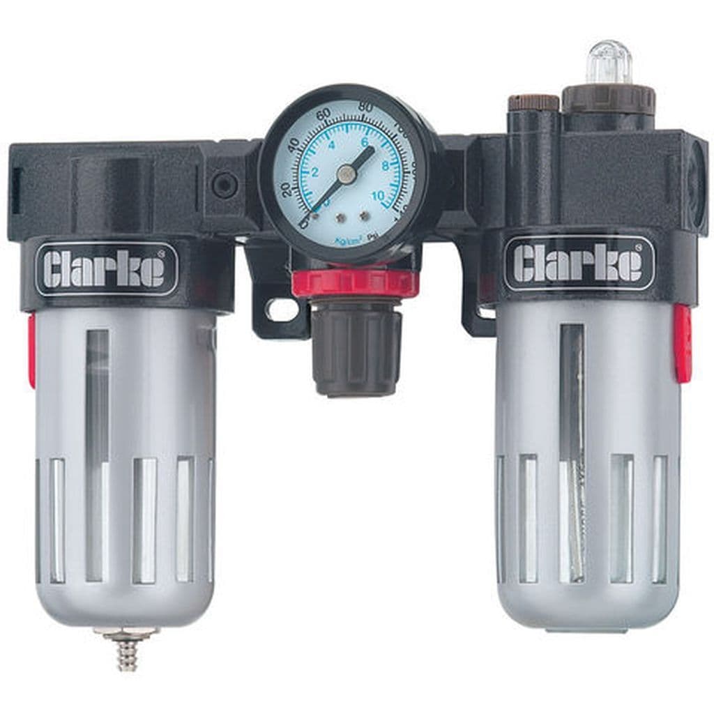 Air Accessories Home / Compressors / Air Accessories / Regulator, Filter & Lubricator Clarke 1/4" CMF2 Regulator, Filter & Lubricator Clarke 1/4" CMF2 Regulator, Filter & Lubricator Clarke 1/4" CMF2 £37.99 £31.66 (ex. VAT) Stock Status: In Stock Add to your Wish List Description Firstly the supply is filtered of moisture and impurities, then pressure regulated before being dosed with a fine airborne lubricant. This triple action in line unit conditions a compressed air supply for use with air tools, pneumatic cylinders and similar equipment. · Maximum airflow 35 cfm · Maximum input pressure 10 bar (150psi) · ¼" bsp connections either side · Filter element 40m · Max Temp 50 °C · Water Bowl Volume 60CC · Oil Bowl Volume 90CC Many Thanks for Visiting our Website We also offer various other equipment such as Cabinets, Pots, Media, Consumables Etc. As Direct Importers we are in a great position to be able to offer a wide range of Blasting products at great prices. As we deal direct we can always offer a great back up service which we feel is very important for our customers. Reviews Customer reviews No reviews left yet Write a review Sort byMost RecentTop Rated No reviews have been left for this product, be the first to leave a review Attributes EAN: 615068996600 MPN: SBC420reg Weight: 5kg